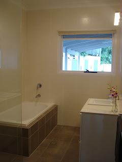 So out came the bath, and then we had the room for a dream walk in wet area shower. I'm so glad that our water restrictions have been lifted, because I'm afraid that I am using up my water rations daily! Oh, what luxury now that I don't have to battle with the 'little bit more cold water' then the 'little bit more hot - that's too much!' scenario every time.